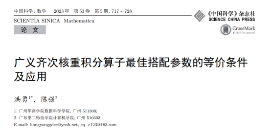 近日,数据科学学院教师洪勇的论文“广义齐次核重积分算子最佳搭配参数的等价条件及应用”在威廉希尔中文网站认定的A1类《中国科学:数学》期刊上发表。