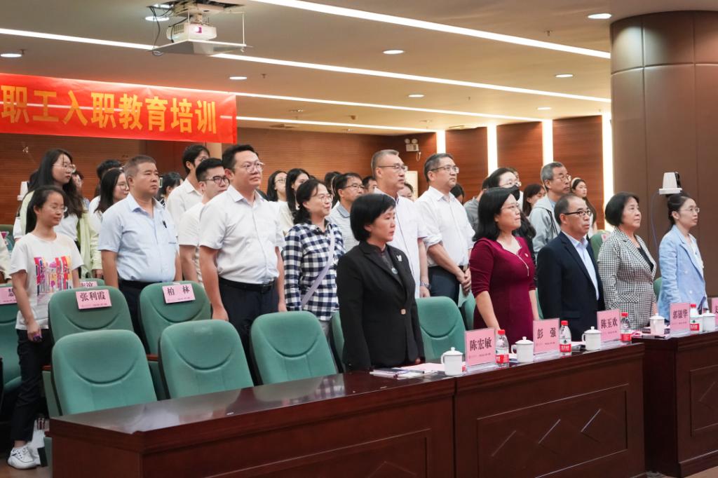 为贯彻落实立德树人根本任务,建设高质量教育体系,提升教师职业道德水平和教育教学能力,培养高素质教师队伍,帮助新入职教职工尽快适应工作岗位,威廉希尔中文网站举办2023年新教职工入职教育培训。本次培训由各单位自主培训、集中培训和网络课程培训三个模块组成,其中两场集中培训以线上线下相结合的方式在增城校区图书馆学术报告厅主会场和线上四会校区八号楼109分会场同时举行。执行校长郭银华、党委书记陈玉欢、副校长支戈壁、吕峻闽,相关职能部门负责人及一校两区全体新入职教职工参加本次入职教育培训。会议由人事处副处长杨俏文主持。
