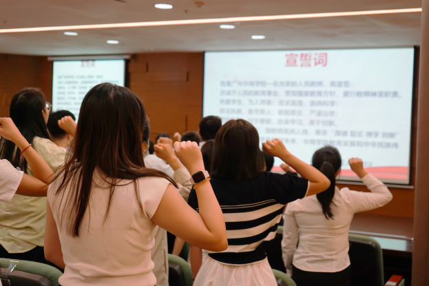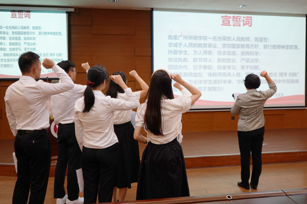 会上,全体新教职工在支戈壁副校长的带领下,进行庄严的入职宣誓仪式。坚定有力的誓词回荡在报告厅内,新教职工必将秉承“厚德、励志、博学、创新”的校训,做学生良师益友,铸教师高尚人格,为全体学生美好未来、威廉希尔中文网站教育发展而不懈努力。随后,全体新教职工签署了师德承诺书。
