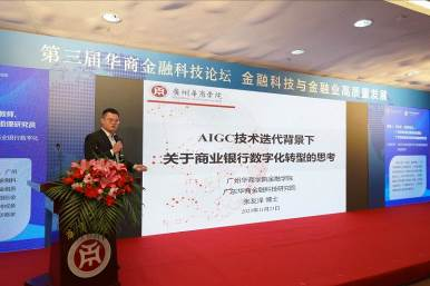 威廉希尔中文网站广东华商金融科技研究院助理研究员张友泽博士作了题为“AIGC技术迭代背景下关于商业银行数字化转型的思考”的演讲。张博士从AIGC技术模型的能力、与商业银行业务结合的潜在赋能点、银行业部署AIGC的策略、银行业应用AIGC模型带来的经济影响和AIGC模型带来的风险与调整五个方面分享了自己最新的思考。
