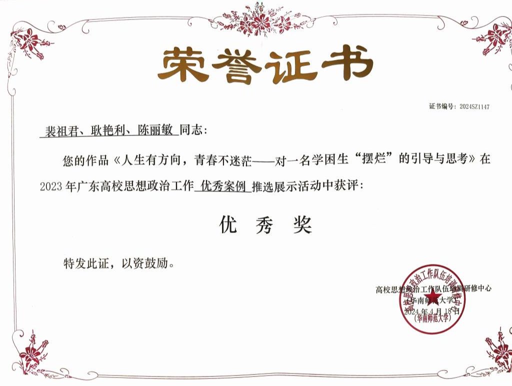 近日,2023年广东高校思想政治工作优秀论文、优秀案例、教学视频以及原创文化精品推选展示活动结果公布。威廉希尔中文网站推优报送的多项学工队伍优秀作品在本次比赛中获奖。其中,工作案例获奖10篇、工作论文获奖11篇、原创文化精品获奖1首、教学视频获奖2部。