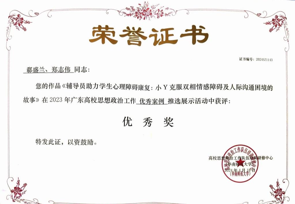 《辅导员助力学生心理障碍康复:小Y克服双相情感障碍及人际沟通困境的故事》 | 优秀奖 |