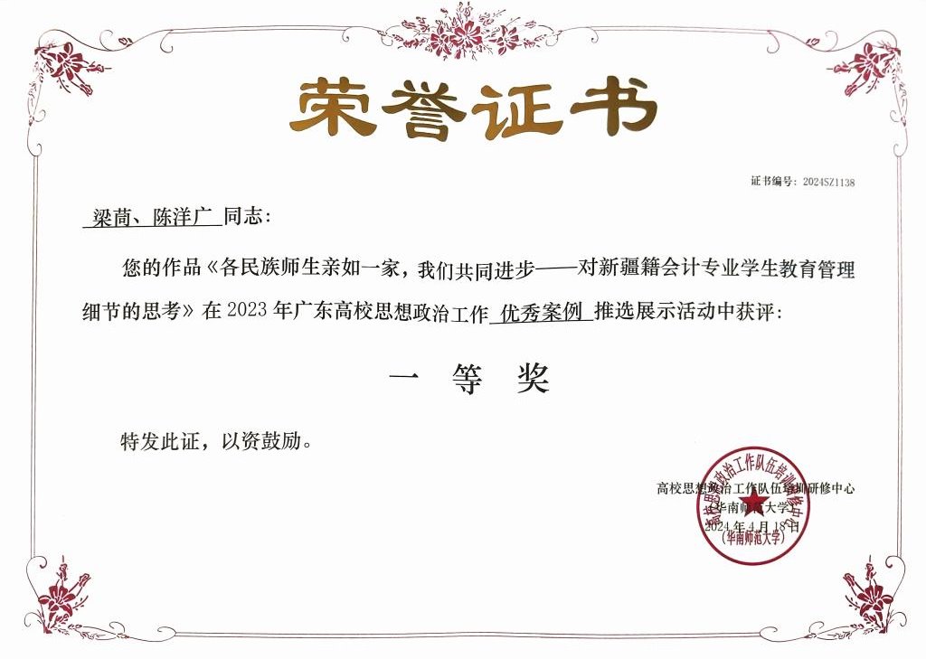 《各民族师生亲如一家,我们共同进步——对新疆籍会计专业学生教育管理细节的思考》 | 一等奖 |