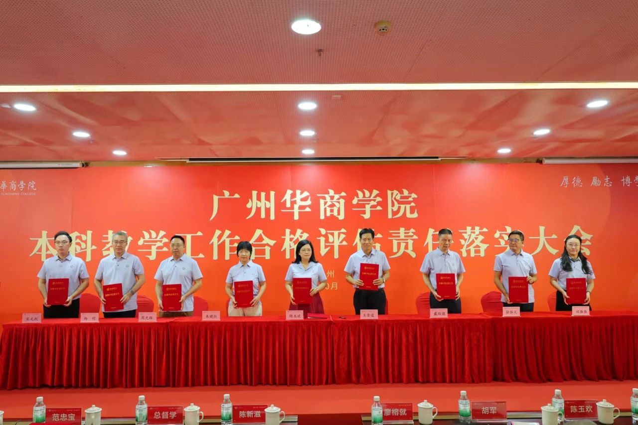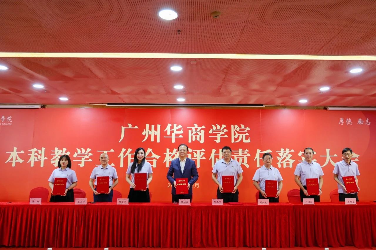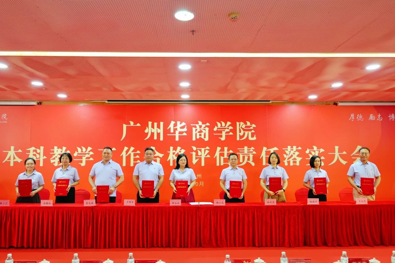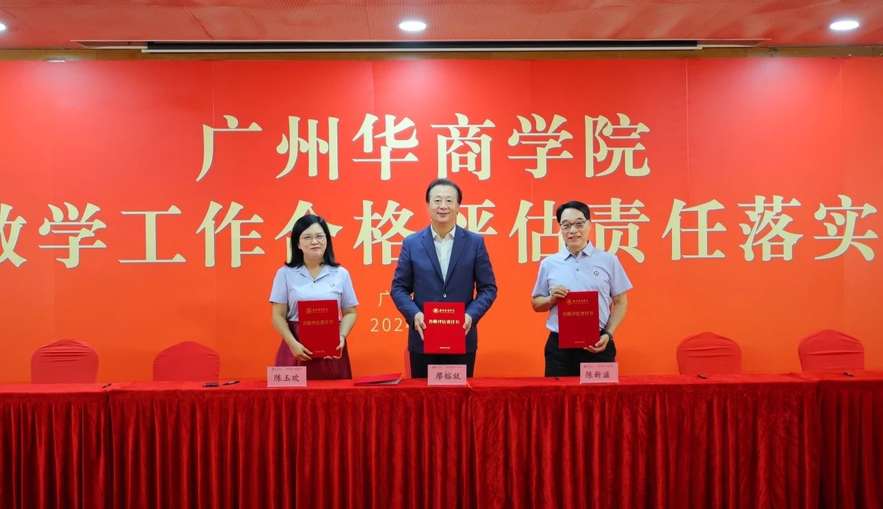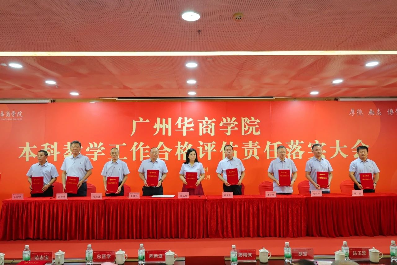 对此,陈玉欢书记提出几点建议:一、提高站位、统一思想,切实增强合格评估工作责任感和紧迫感。高质量、高标准完成评建工作任务,顺利通过合格评估对学校发展具有十分重要的意义,要深刻理解合格评估关系到学校生存发展、要深刻理解合格评估关系到师生利益保障、要深刻理解合格评估关系到办学意愿达成;二、认清形势、明确任务,全力以赴做好合格评估工作。当前,学校需要整改和建设的项目较多,要正确认识合格评估是一次严峻挑战、要正确认识合格评估是一项系统工程、要正确认识合格评估是一场必胜战役;三、坚定信心、落实责任,切实确保合格评估顺利通过。合格评估涉及学校工作的各个方面,要务必增强合格评估的必胜信心、要务必增强合格评估的责任落实、要务必增强合格评估的责任追究。陈玉欢书记强调,签订责任书就是吹响前进号、立下军令状,领导干部是学校办学和本科教学合格评估的中坚力量、责任部门,党政主要领导必须扛稳责任担当,各级党组织要发挥政治核心作用,领导干部要带头、全体党员要示范,全体华商人要统一思想、凝聚共识,高质量完成各项迎评促建任务,一次性顺利通过合格评估。