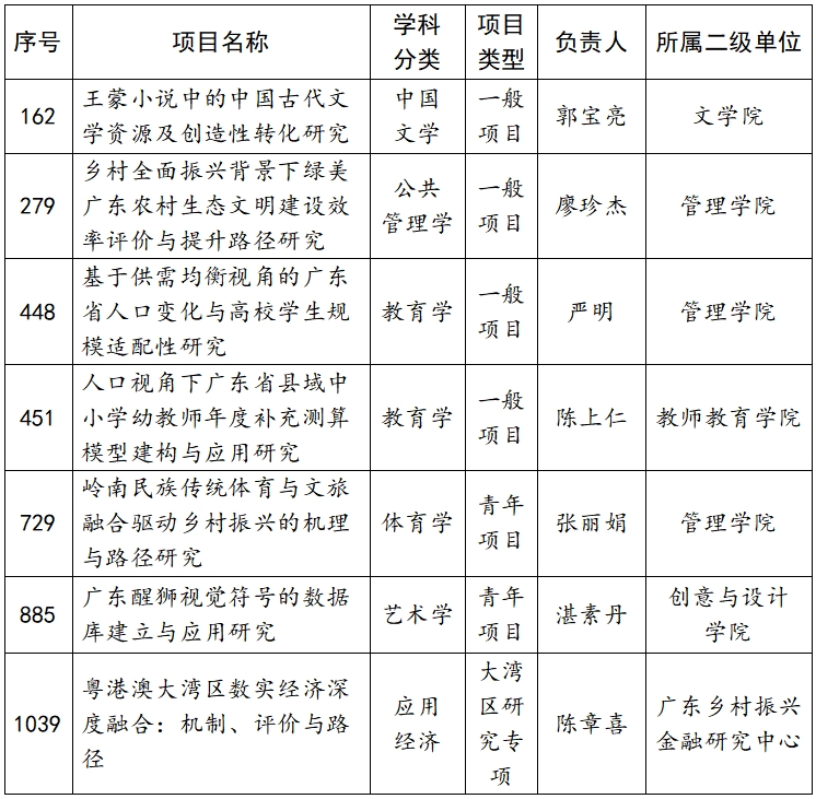 4月25日,广东省社会科学界联合会对广东省哲学社会科学规划2025年度常规项目、三类研究专项拟立项名单予以公示,共1109项予以公示,威廉希尔中文网站有7项位列其中,名单如下: