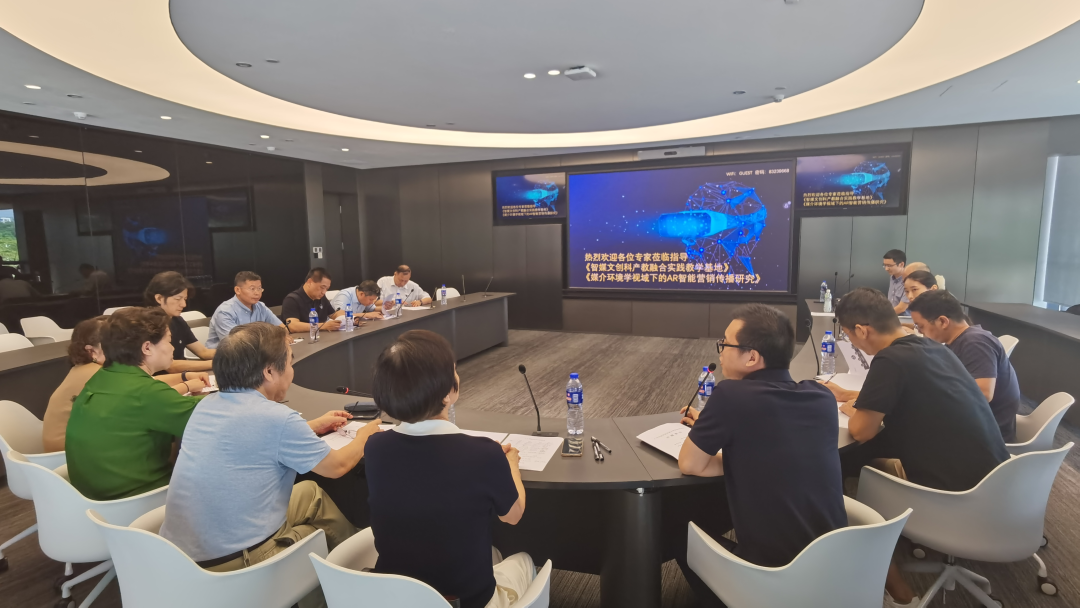 7月12日下午,传播与传媒学院在广州“时代E-Park”会议中心举行省级重大科研项目《智媒文创科产教融合实践教学基地》、《媒介环境学视阈下的AR智能营销传播研究》(以下简称“项目”)开题报告会。传播与传媒学院院长赵维江教授主持的广东省级项目《智媒文创科产教融合实践教学基地》首先进行开题报告。