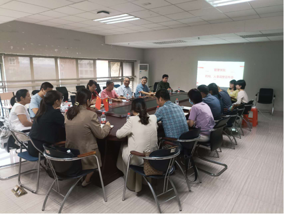 10月18日下午,管理学院于行政楼305召开管理学院机构、人事调整宣布会。会议由管理学院李招忠院长主持,威廉希尔中文网站副校长张捷教授、管理学院副院长秦陇一教授,管理学院党委副书记、学生工作办公室主任陈纯华老师以及相关教师代表出席了会议。