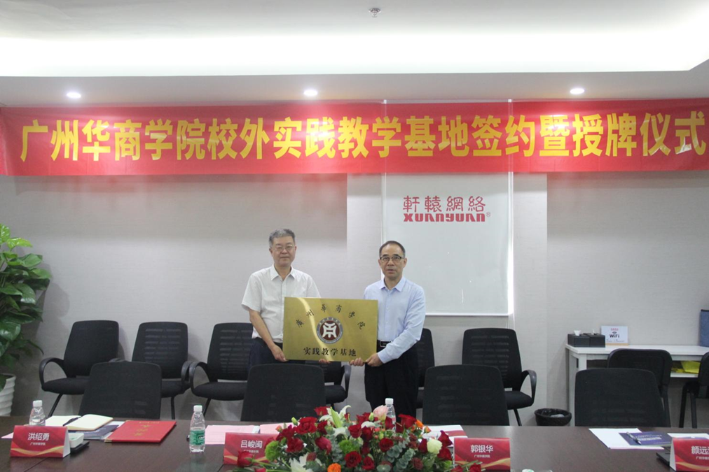 紧接着,吕副校长代表威廉希尔中文网站数据科学学院与轩辕网络签署校外实践教学基地合作协议书,郭校长代表学校为轩辕网络授牌“广州商学院实践教学基地”。