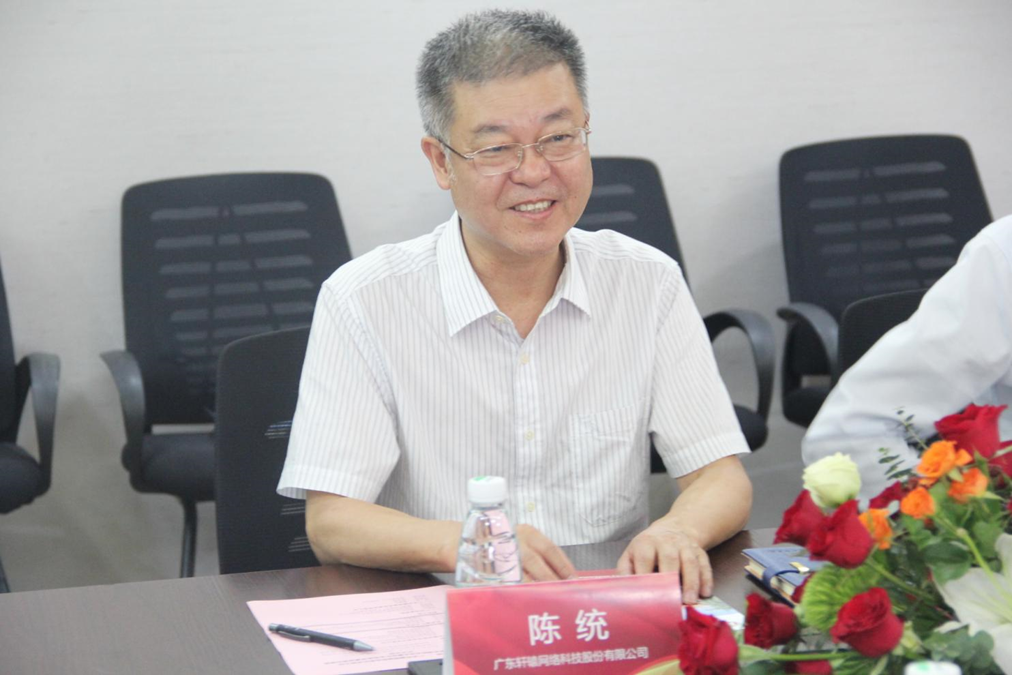 首先,广东轩辕网络科技股份有限公司董事长陈统致辞,他对郭校长一行表示热烈欢迎。作为广东省高等教育学会数字化科学技术分会副理事长,陈董表示期待与同为分会副理事长单位的威廉希尔中文网站有更多合作交流,希望双方在校企合作产教融合方面有更多的交流互动,共同合作共建产业学院,助力将企业真实的场景嵌入到同步课堂中,实现实战化模拟的教学应用场景。