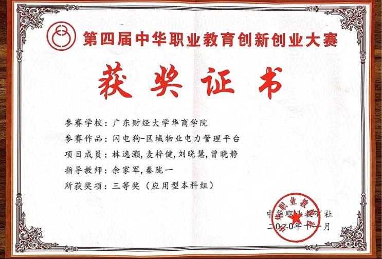 林逸灏校友参与的创业项目“Go购够智能零售系统”被立项为广东省大学生“攀登计划”培育项目,并荣获2017年全国挑战杯大学生科技大赛广东省赛一等奖、2017年“青创杯”广州青年创新创业大赛增城赛区三等奖;创业项目“闪电狗—区域物业电力管理平台”在2020年第六届中国国际“互联网+”大学生创新创业大赛广东省分赛中获得铜奖,并在2020年11月代表广东省获得第四届中华职业教育创新创业大赛全国总决赛应用技术型本科组三等奖。